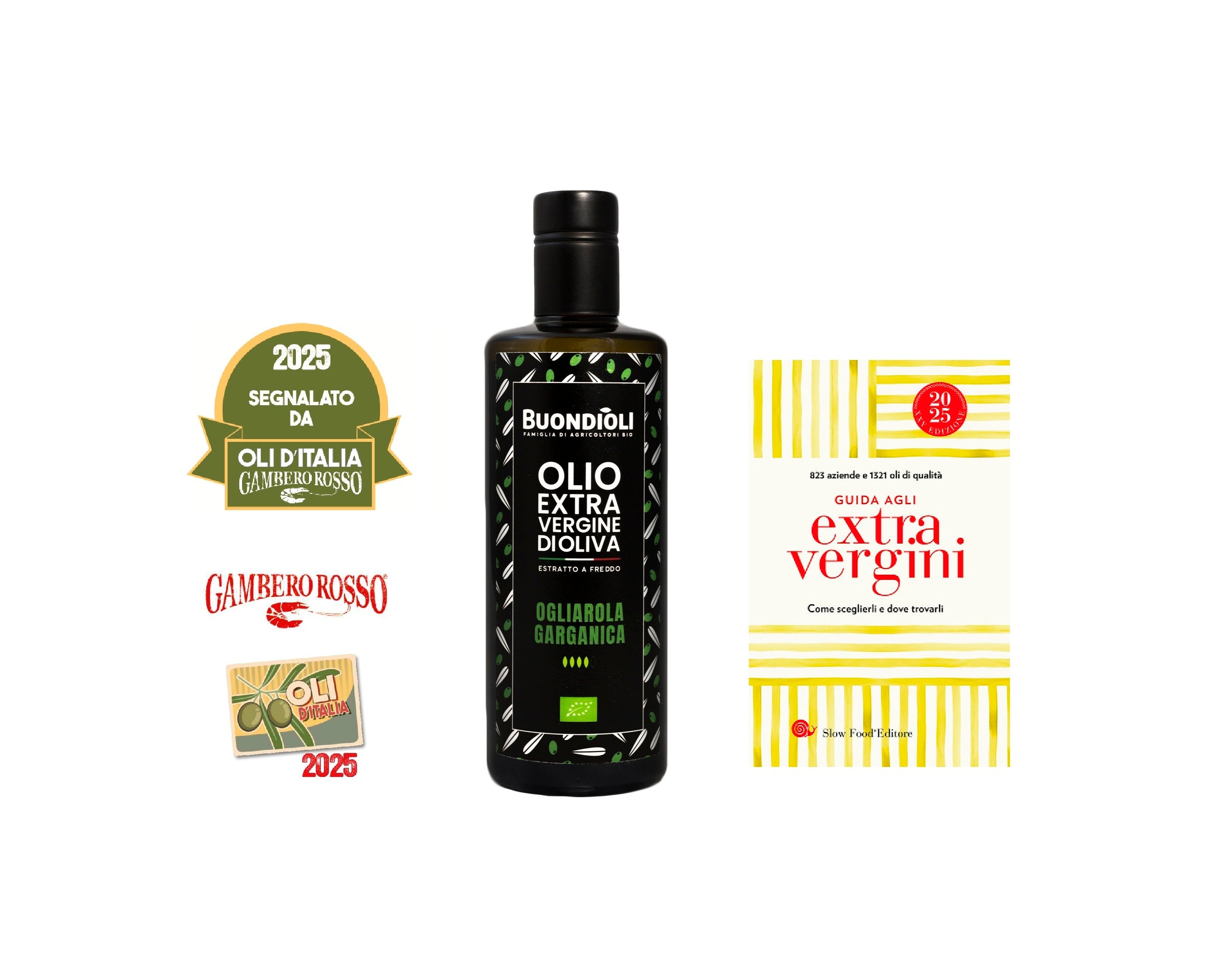 Un olio che non passa inosservato: è orgogliosamente presente nella Guida Oli d’Italia del Gambero Rosso 2025 e nella Guida agli Extravergini di Slow Food 2025.